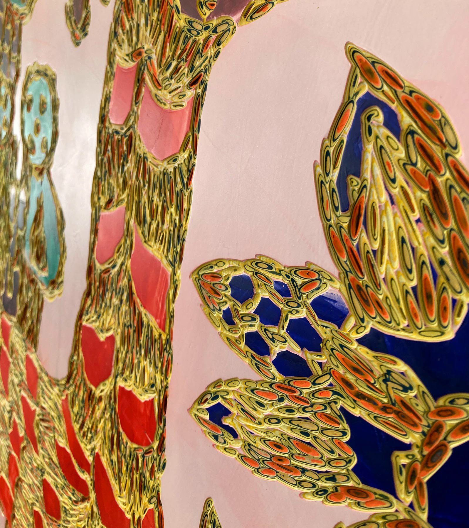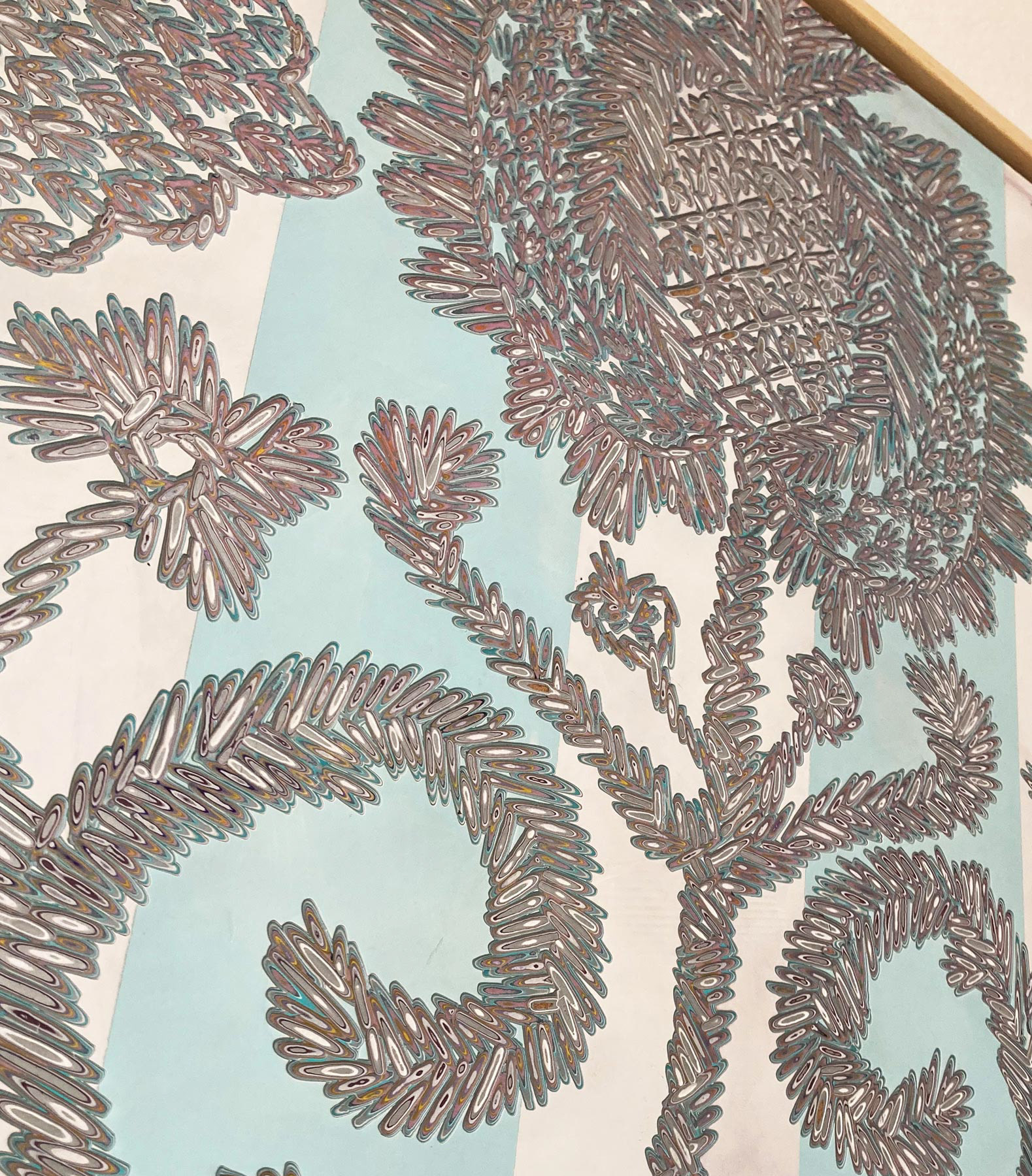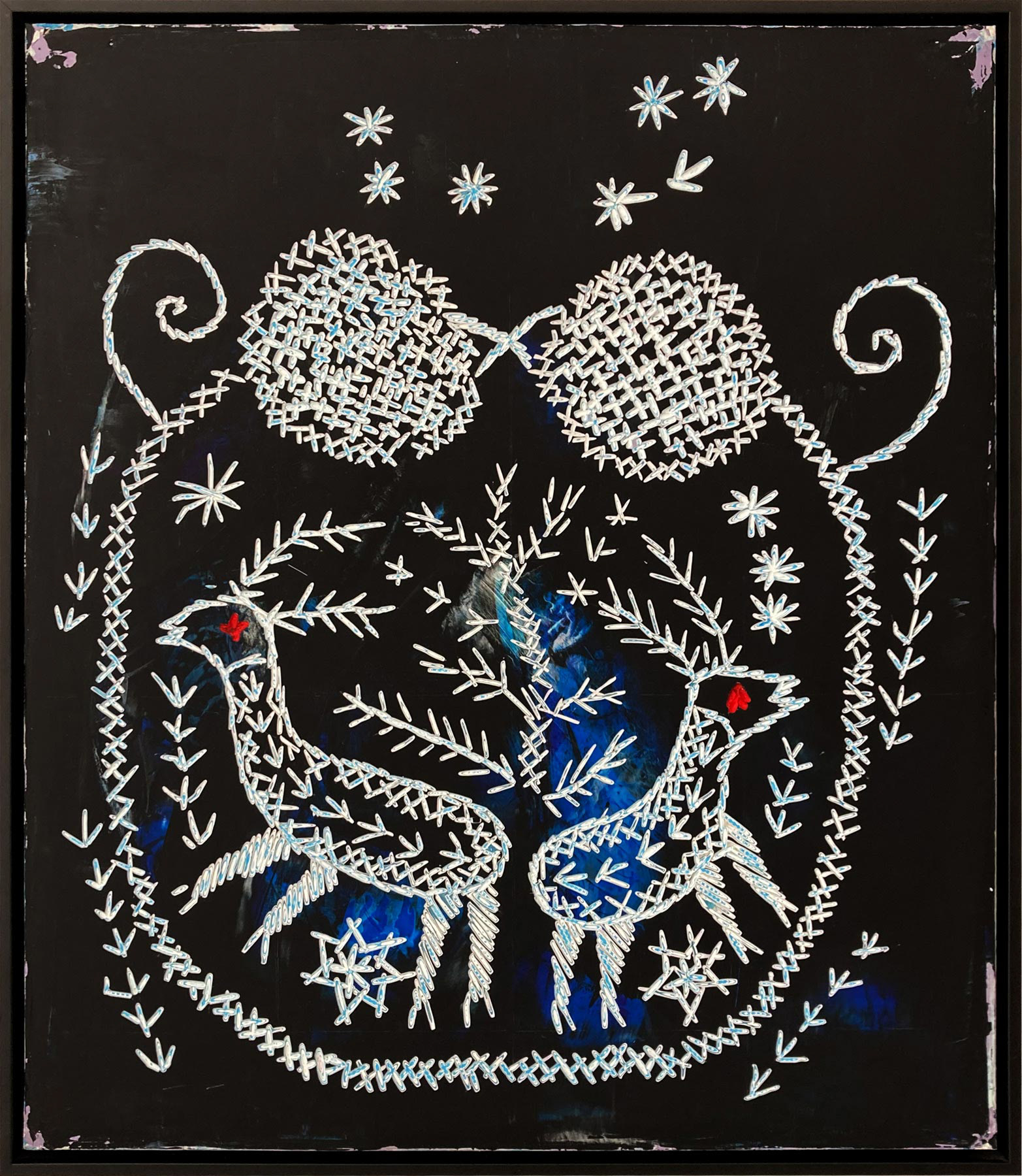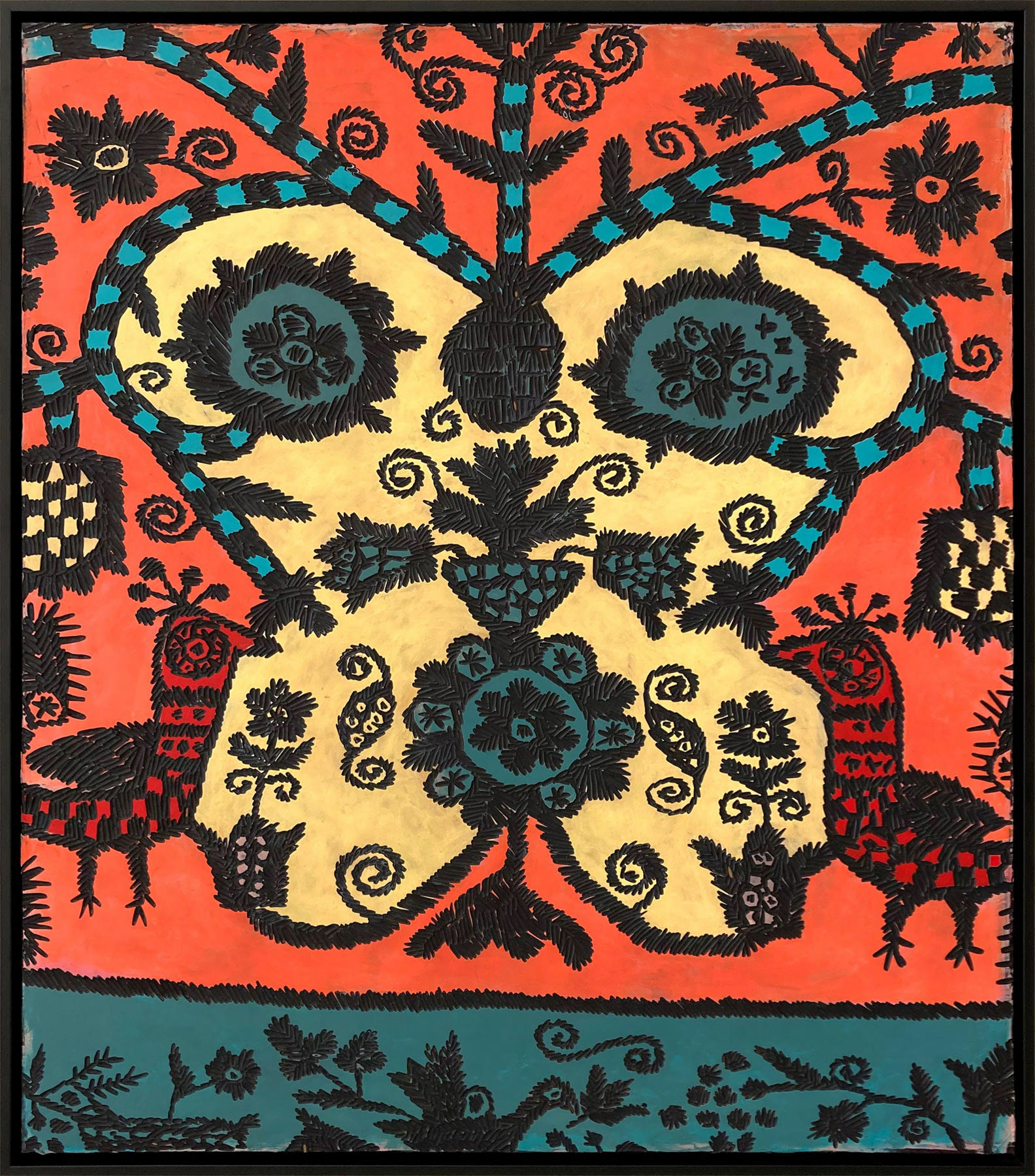 The cycle Blast from the Past reflects on the genesis of Slovak folk ornamentation and explores the possibilities of applying its visual language within contemporary visual culture. Folk ornament, as a significant impulse in my creative practice, offers a wealth of inspiring points of departure thanks to its multilayered meanings. For instance, embroidery on traditional garments, beyond its aesthetic function, also communicated social status, origin, and family background. In the case of ritual objects, folk ornamentation likewise carried a magical function. Equally inspiring is the natural, spontaneous aesthetic of folk artistic expression itself, which continues to fascinate me.