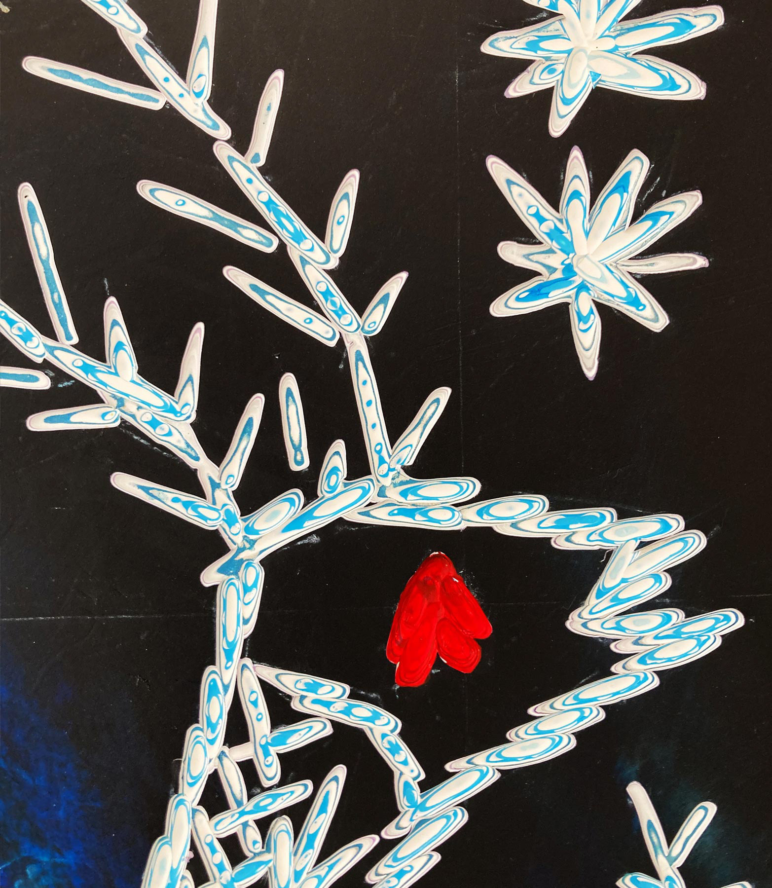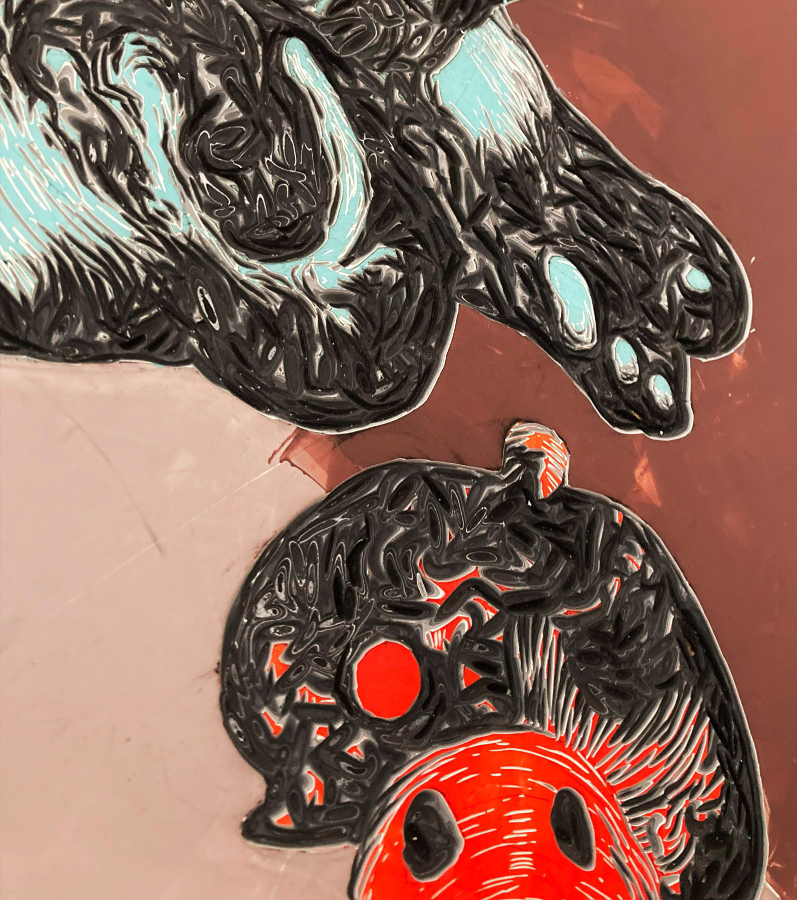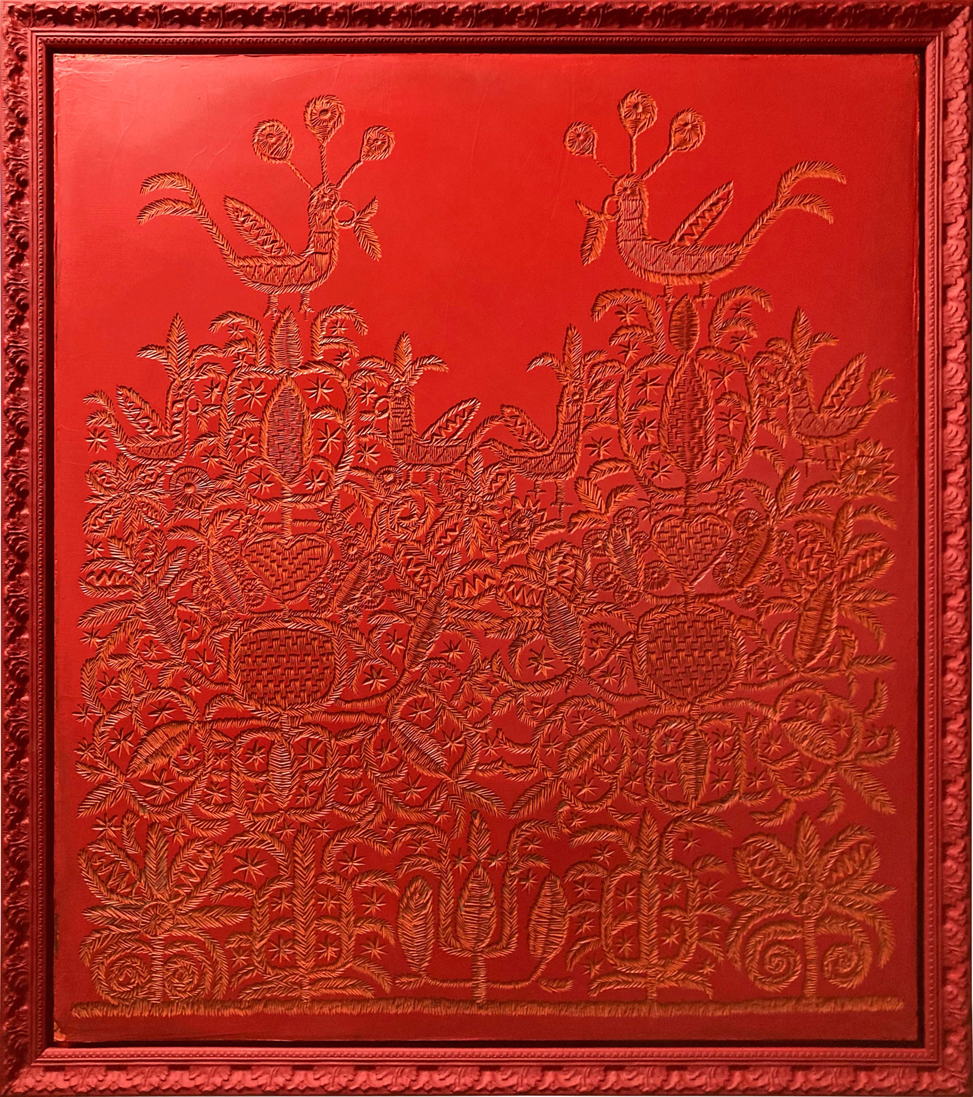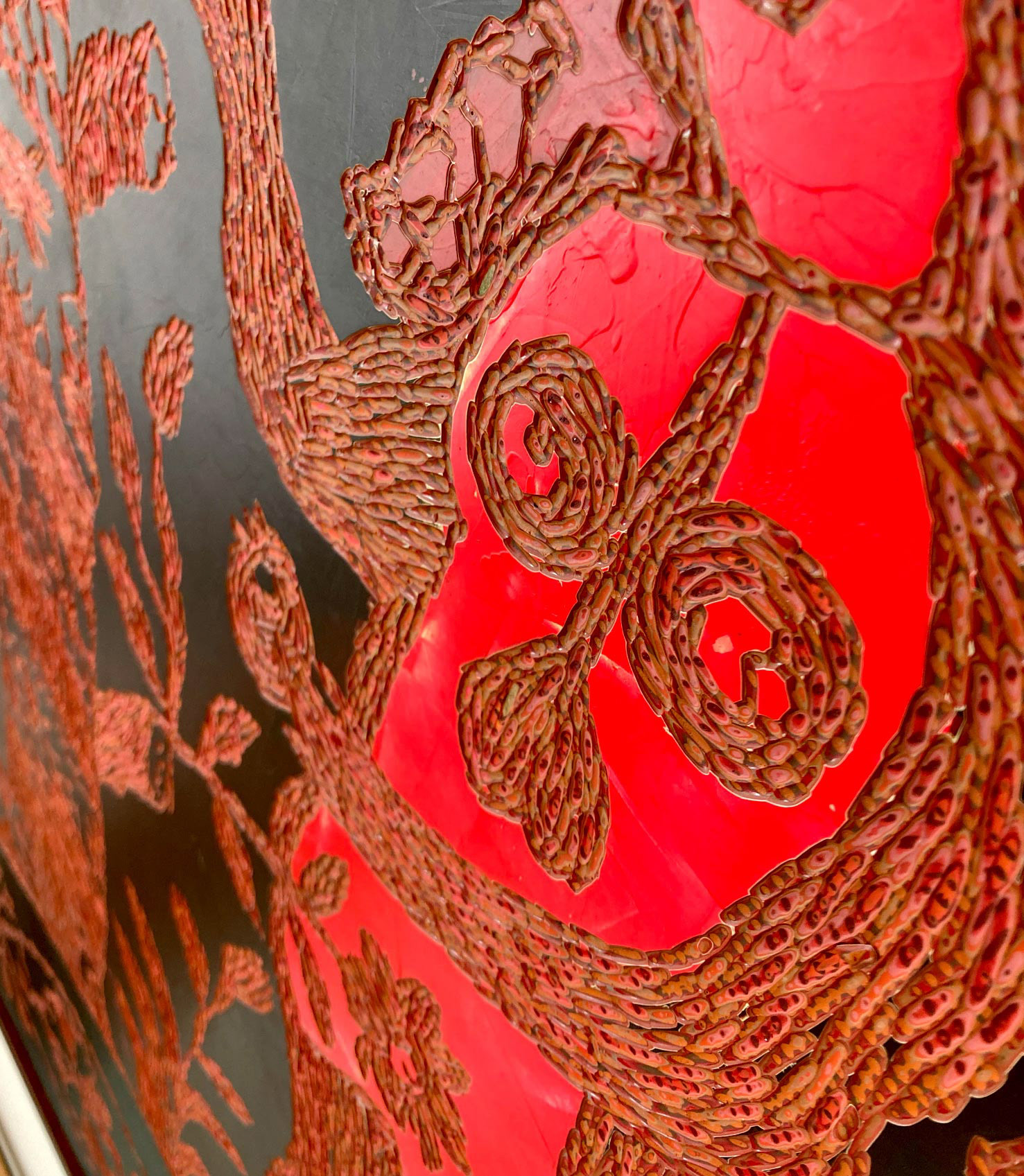 The cycle Blast from the Past reflects on the genesis of Slovak folk ornamentation and explores the possibilities of applying its visual language within contemporary visual culture. Folk ornament, as a significant impulse in my creative practice, offers a wealth of inspiring points of departure thanks to its multilayered meanings. For instance, embroidery on traditional garments, beyond its aesthetic function, also communicated social status, origin, and family background. In the case of ritual objects, folk ornamentation likewise carried a magical function. Equally inspiring is the natural, spontaneous aesthetic of folk artistic expression itself, which continues to fascinate me.